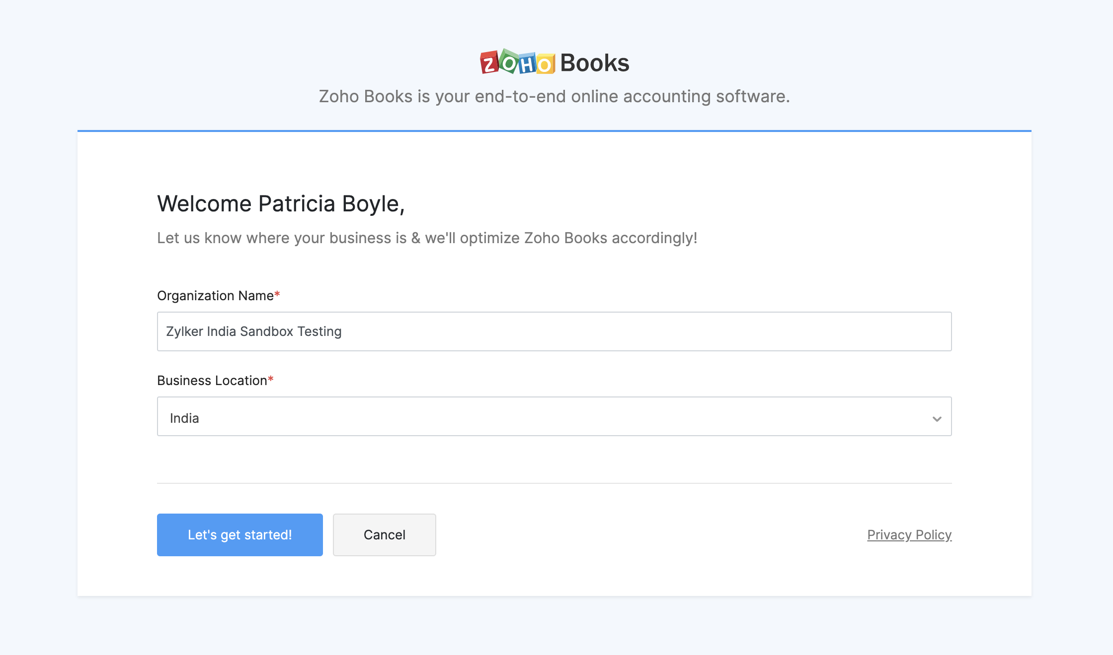 Next, you can write to the Zoho Books’ support team to enable sandbox for this organisation.