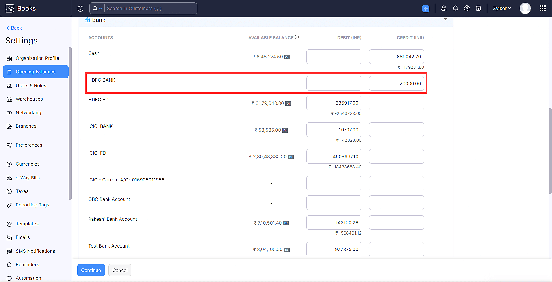 Select Adjust Opening Balance if you want to adjust the opening balance recorded in Zoho Books to adjust the difference.