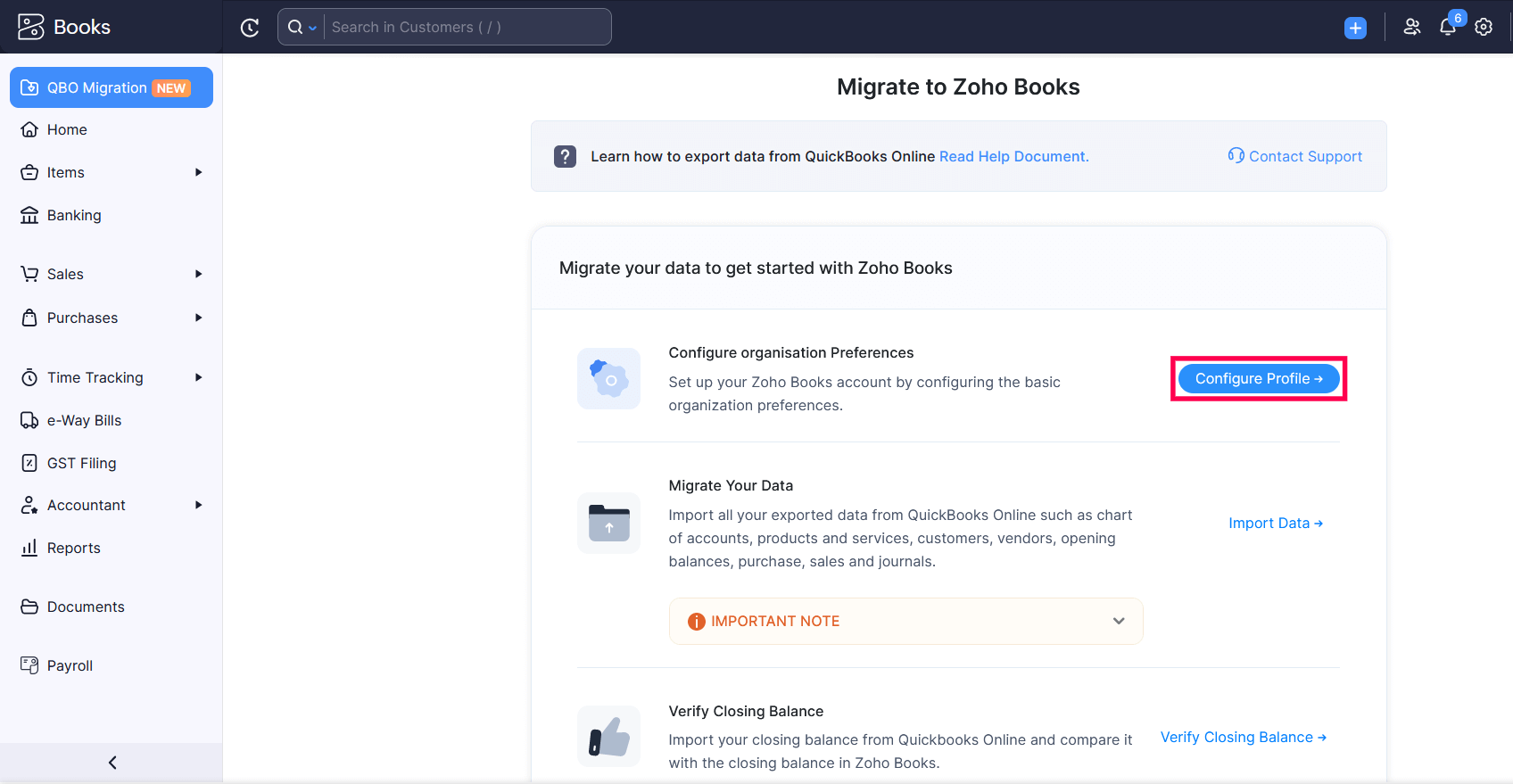 Note: If you have doubts about migration or if you face any issues with the migration, write to us at support.india@zohobooks.com and we will help you migrate from QuickBooks to Zoho Books.