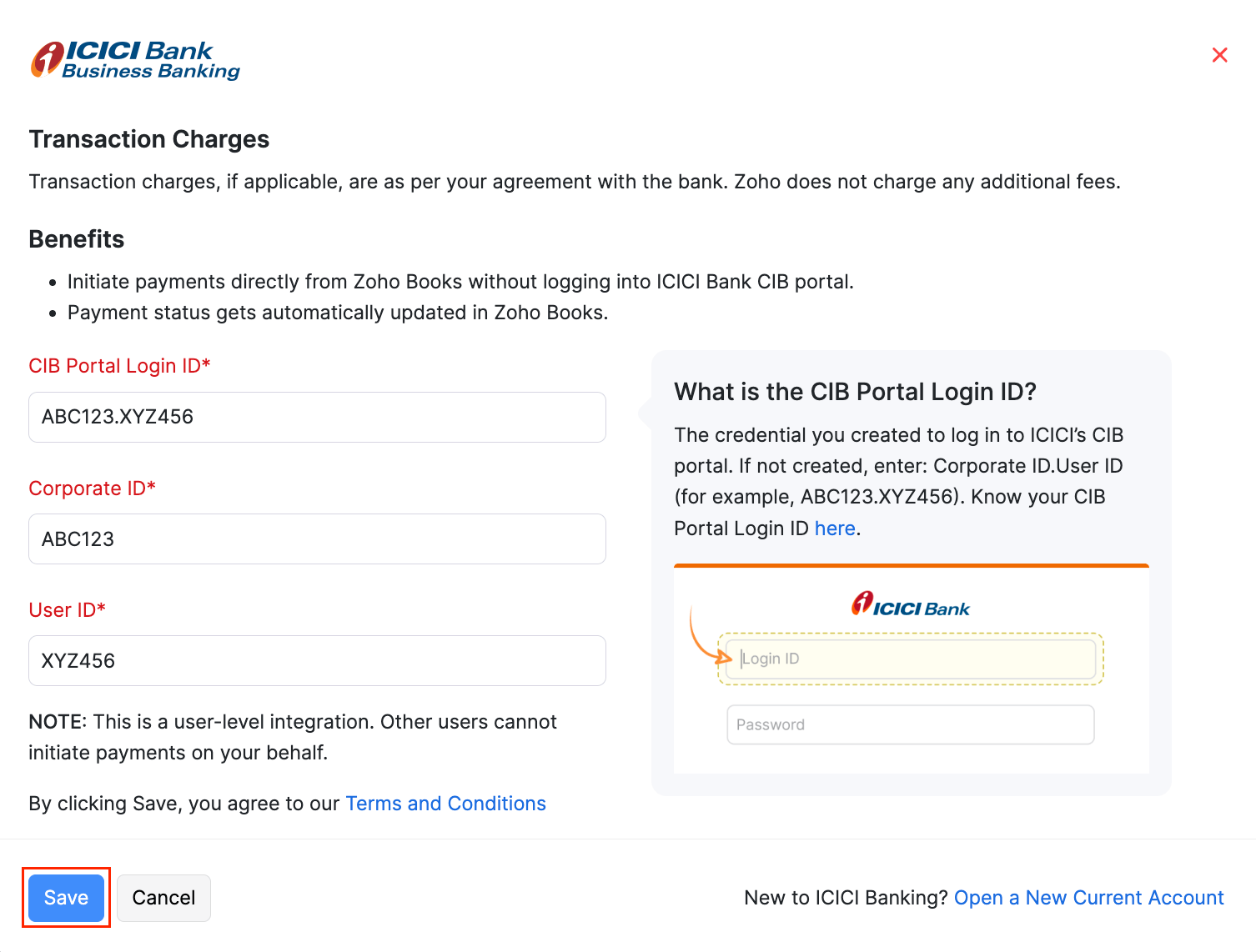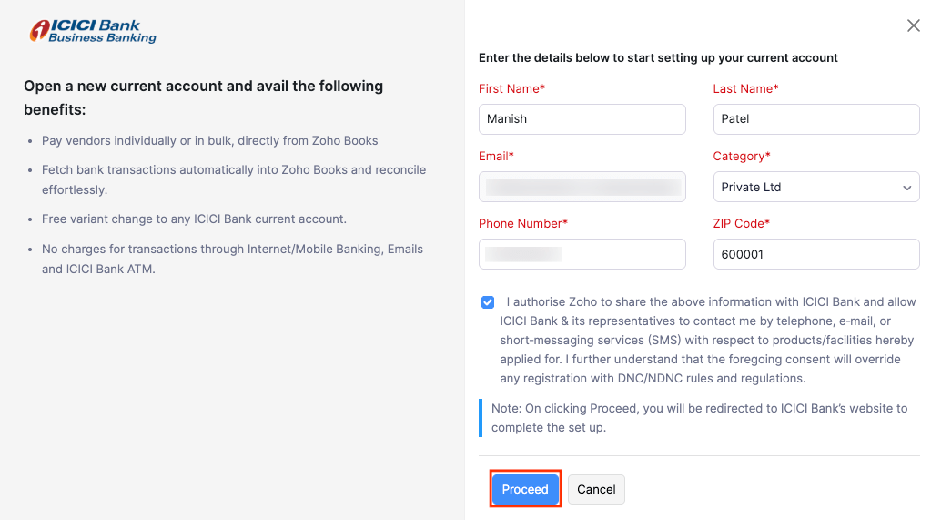 Integrate Zoho Books with ICICI Bank