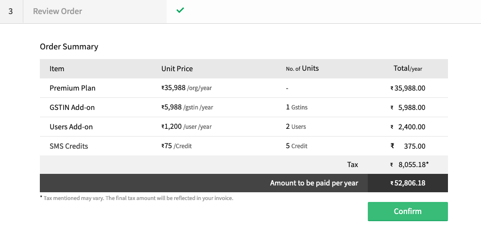 • Verify your plan details before proceeding to make the payment and click Confirm.