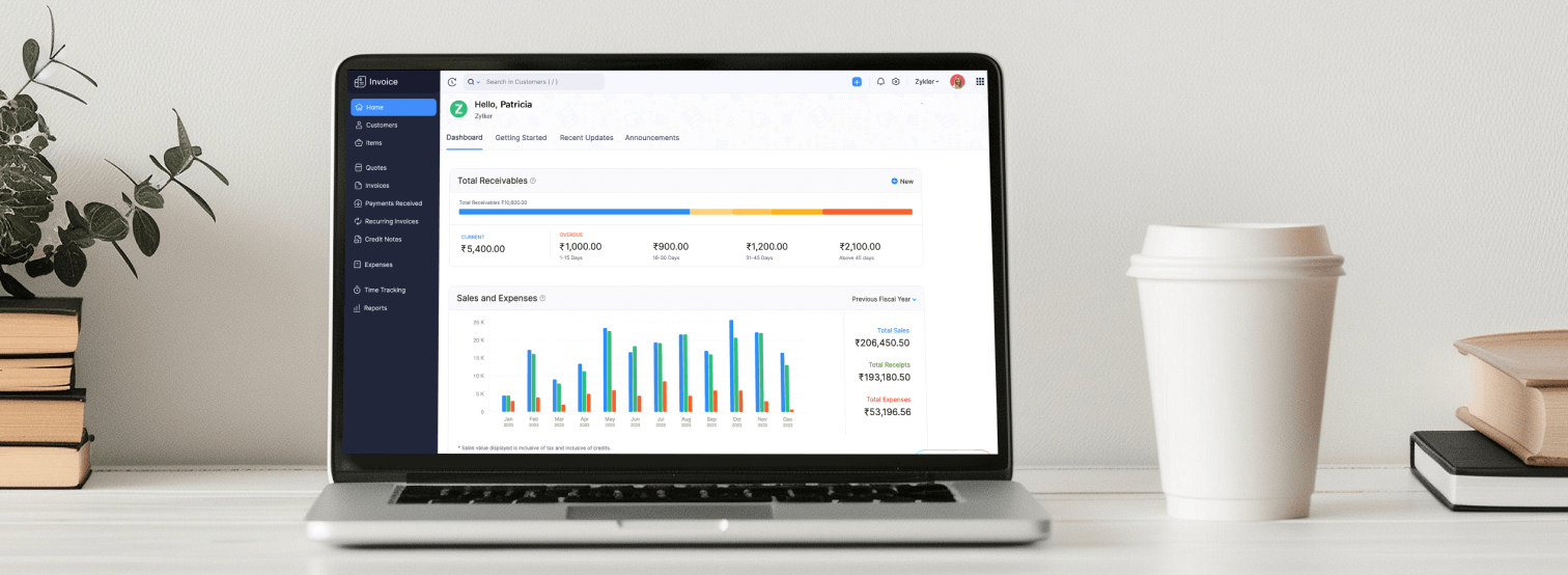 Create and send invoices, accept online payments, and simplify GST filing with Zoho Invoice.