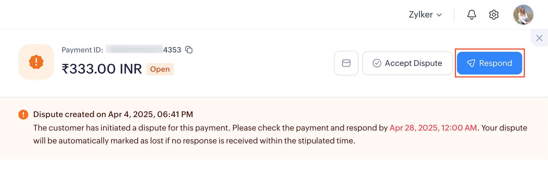 When a customer raises a dispute against a transaction, the payment will be available in the Dispute list view. You can switch between tabs and click on a dispute.