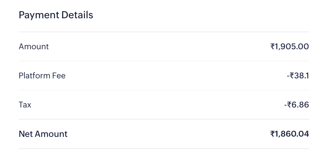 This section contains the details of the relevant payment that was disputed. It includes the Payment Descriptor you had provided in your settings, the Amount Paid by the customer, the Platform Fee, the Disputed amount, and the final Net Amount after disputes or refunds.