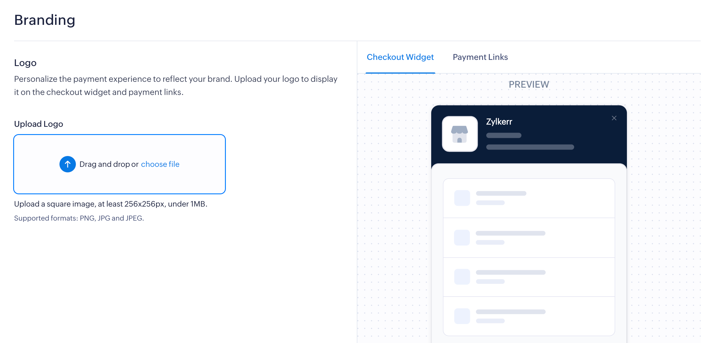 Your logo, theme, and border changes will apply to the checkout widget and payment links shared with your customers.