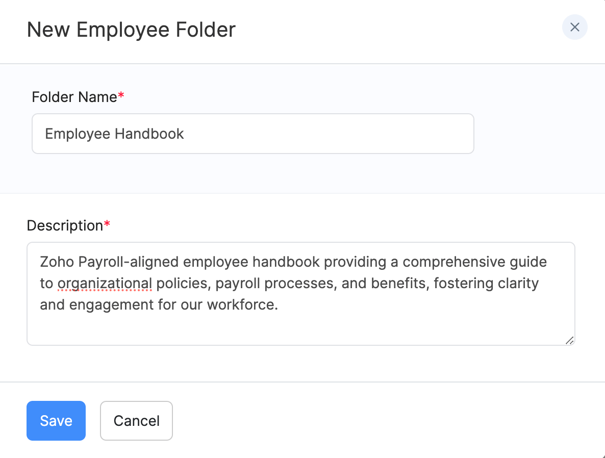 To organize your employee-specific documents efficiently, follow these steps to create Employee Folders within Zoho Payroll.