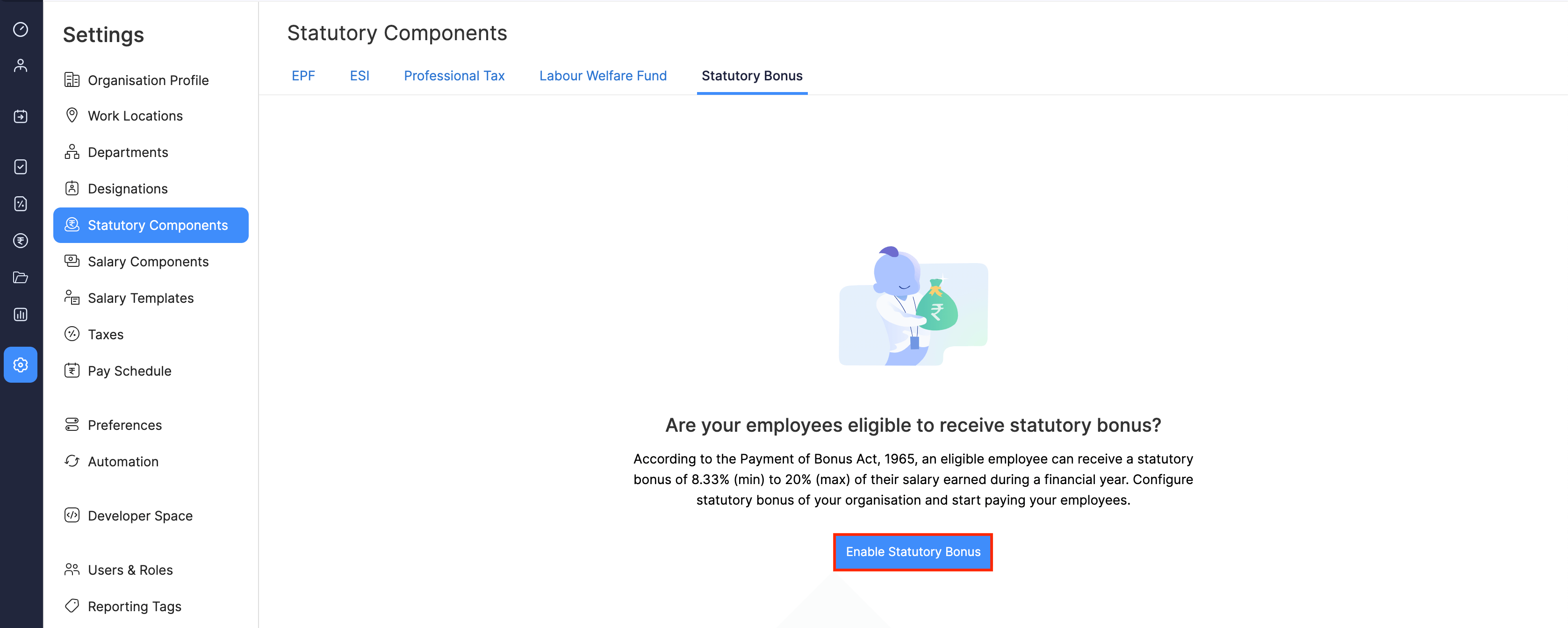 Enable the option for your organisation before you configure statutory bonus for your employees. Here’s how: