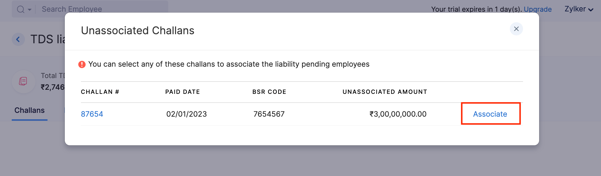 If you have any pending TDS liability that is yet to be associated to the employee, you can associate it later.