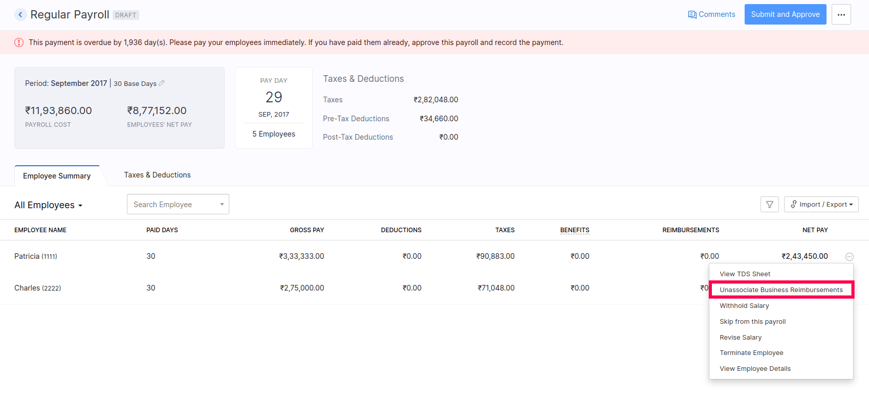 These employees you’ve added to Zoho Expense will now be able to submit expense reports and have them reimbursed in their pay run in Zoho Payroll.