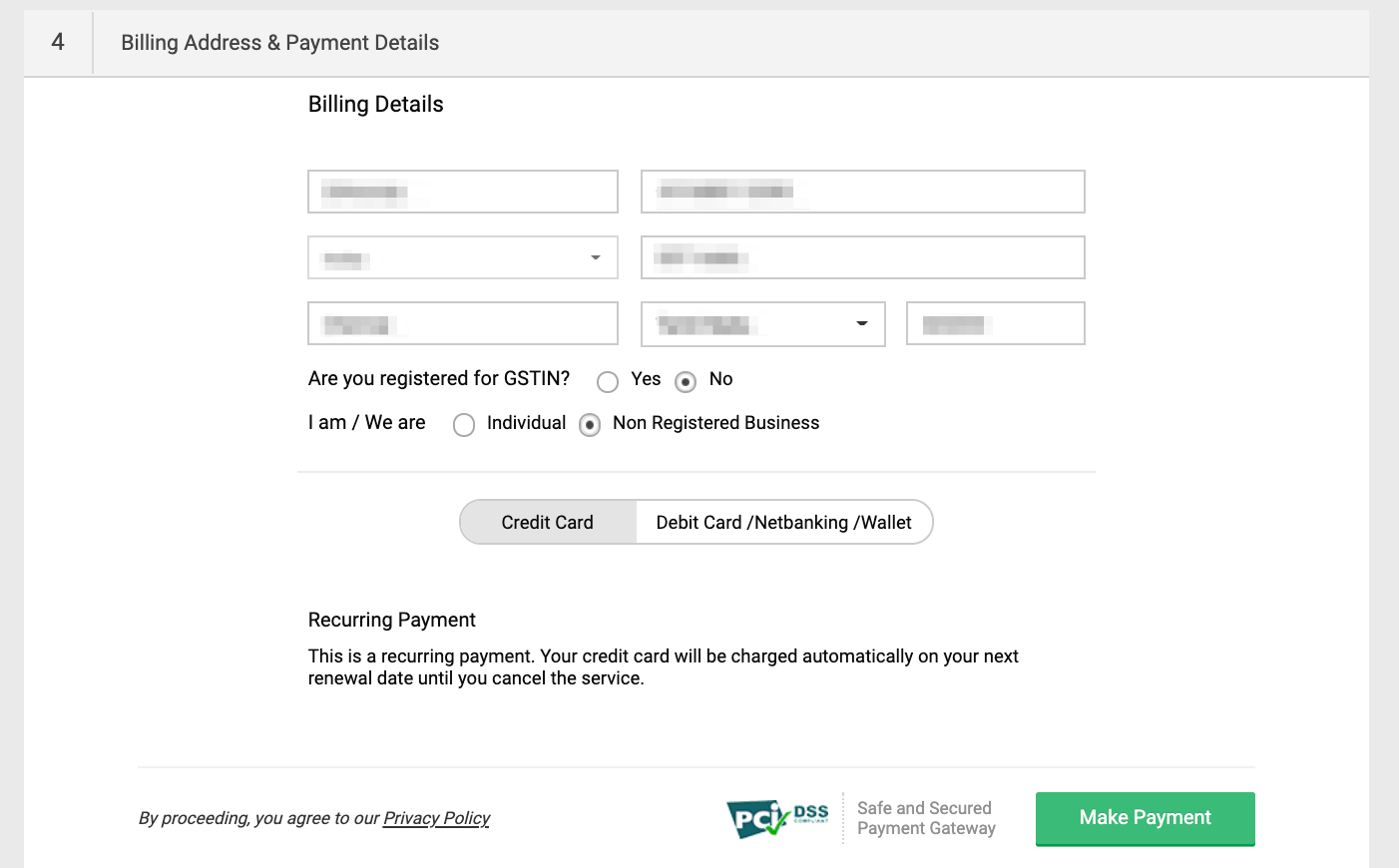 - Click Make Payment.