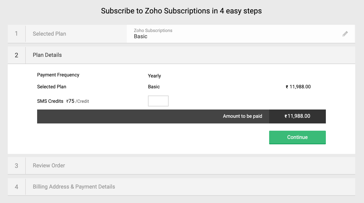- Log in to your Zoho Billing organization.