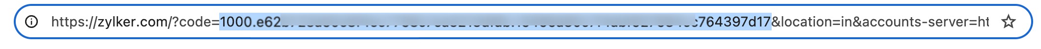 2. Provide the authorization URL (https://accounts.zoho.in/oauth/v2/auth) appended with the given params in the browser in which you have logged in using your account to generate the grant token.
