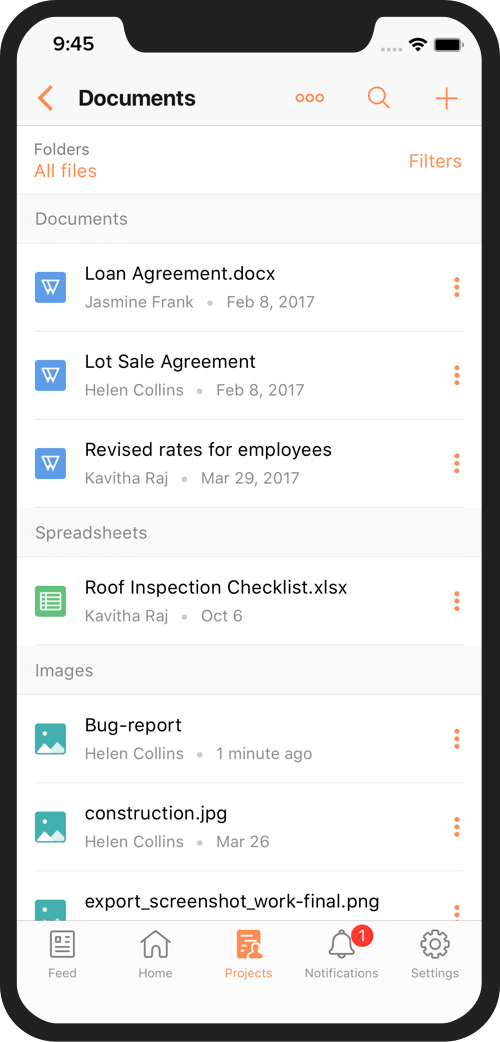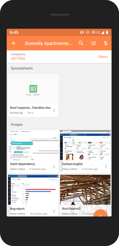 お使いのモバイル端末から、複数の文書やスプレッドシート、プレゼンテーションをアップロードできます。それらをフィード内のコメントやステータスの更新として共有したり、バグと関連付けたり、ファイルをプロジェクトに追加したりできます。また、コンテンツをプレビューし、チームメイトがアプリにアップロードした最新バージョンのドキュメントにアクセスすることもできます。