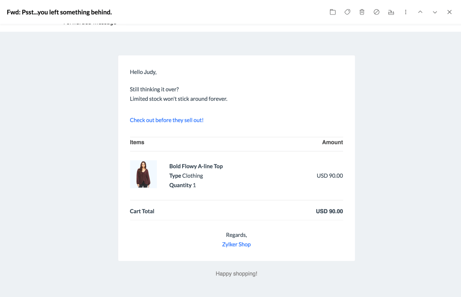 商品をショッピングカートに追加したにもかかわらず、購入に至らなかったお客さまに、戦略的なフォローアップメールを送信します。
