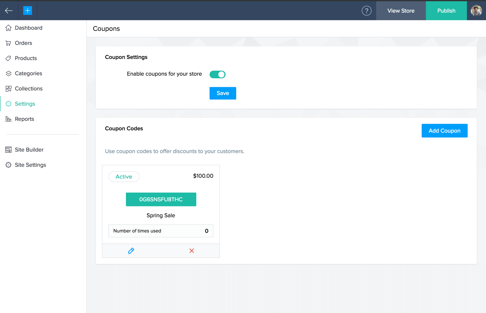 商品、カテゴリー、コレクション、顧客、配送ゾーンに基づき、特定の割引を提供するクーポンを使用できます。各クーポンの有効期間、使用できる回数、割引の種類と値を設定します。