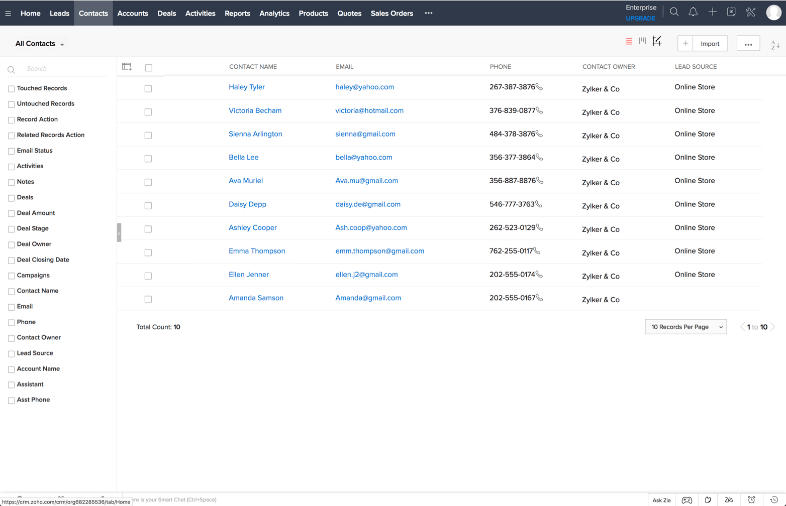 Zoho CRM連携により、顧客情報と商品情報を、オンラインストアとZoho CRM間で双方向に同期します。ストアにCRMのWebフォームを追加することで、見込み客やお問い合わせを一元管理できます。
