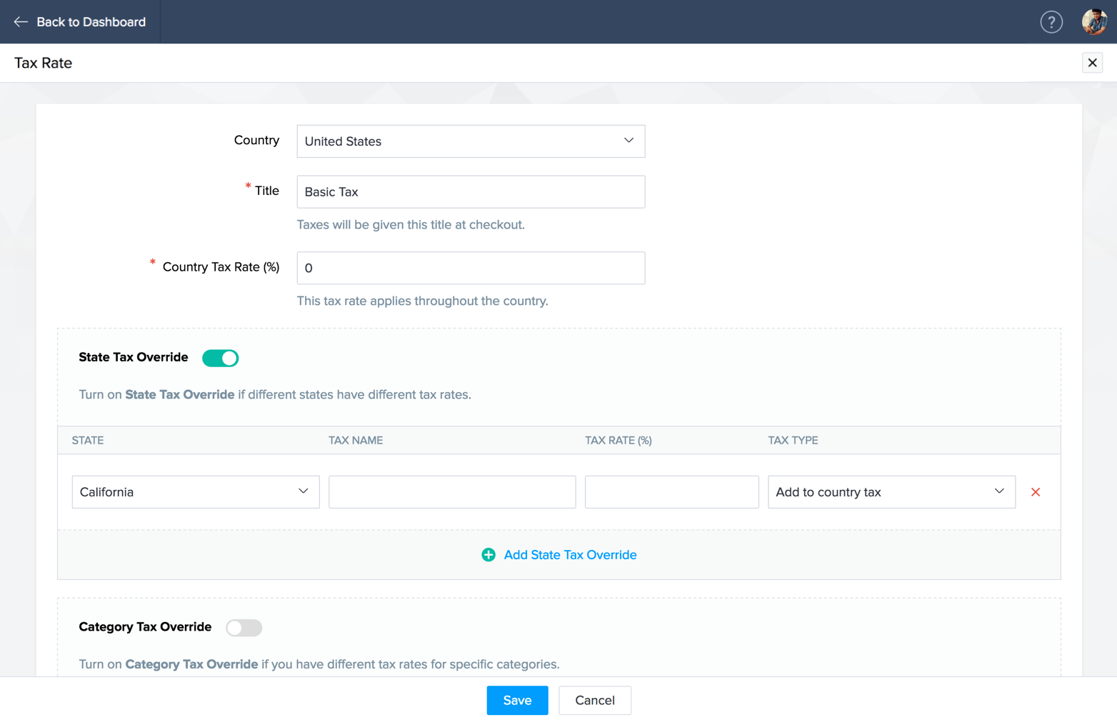 消費税計算を自動的に処理します。州やカテゴリー固有の税務規則、商品の税込み価格と税抜き価格に対応し、税の上書き、複合税を設定できます。