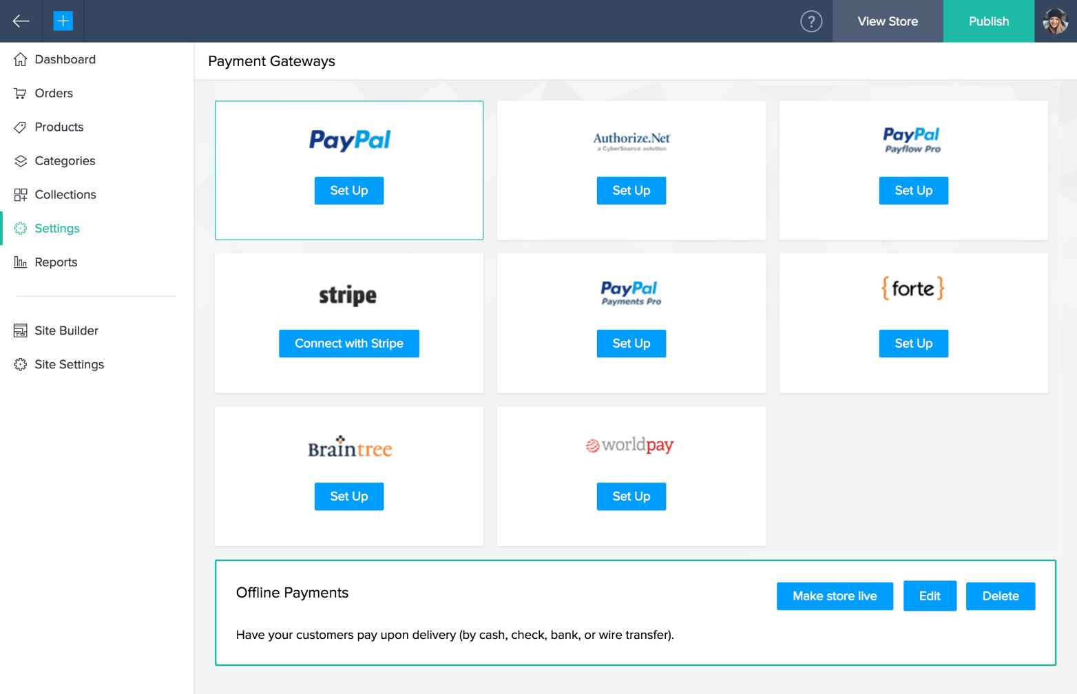 PayPal、Stripe、Authorize.Net、Braintree、Forte、2Checkout、Razorpayなど、一番人気の決済ゲートウェイから選択できます。