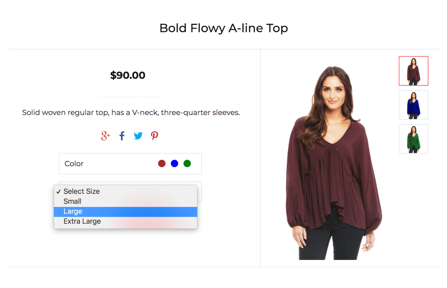 お客さまが、商品の仕様を選択できるようにします。商品のサイズやカラー、その他のバリエーションを追加できます。