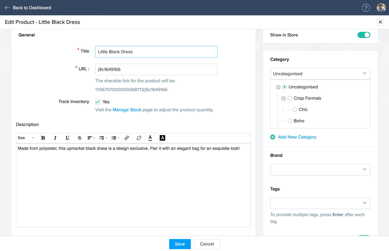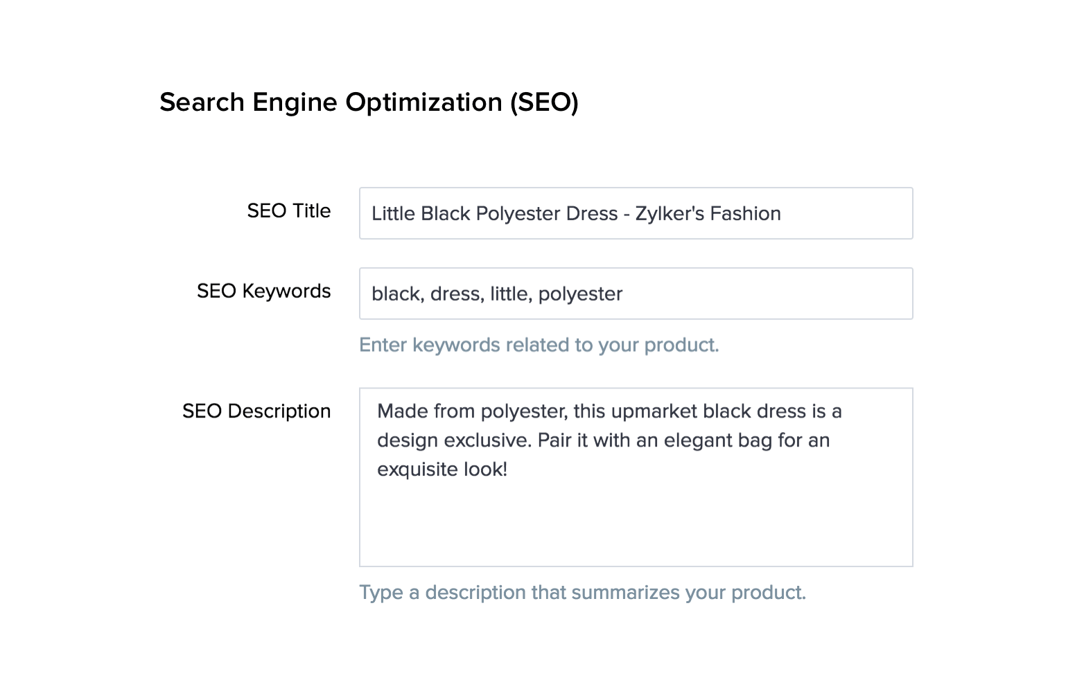 追加したすべての商品で、SEOセクションを活用し、検索エンジンのパフォーマンスを向上させます。