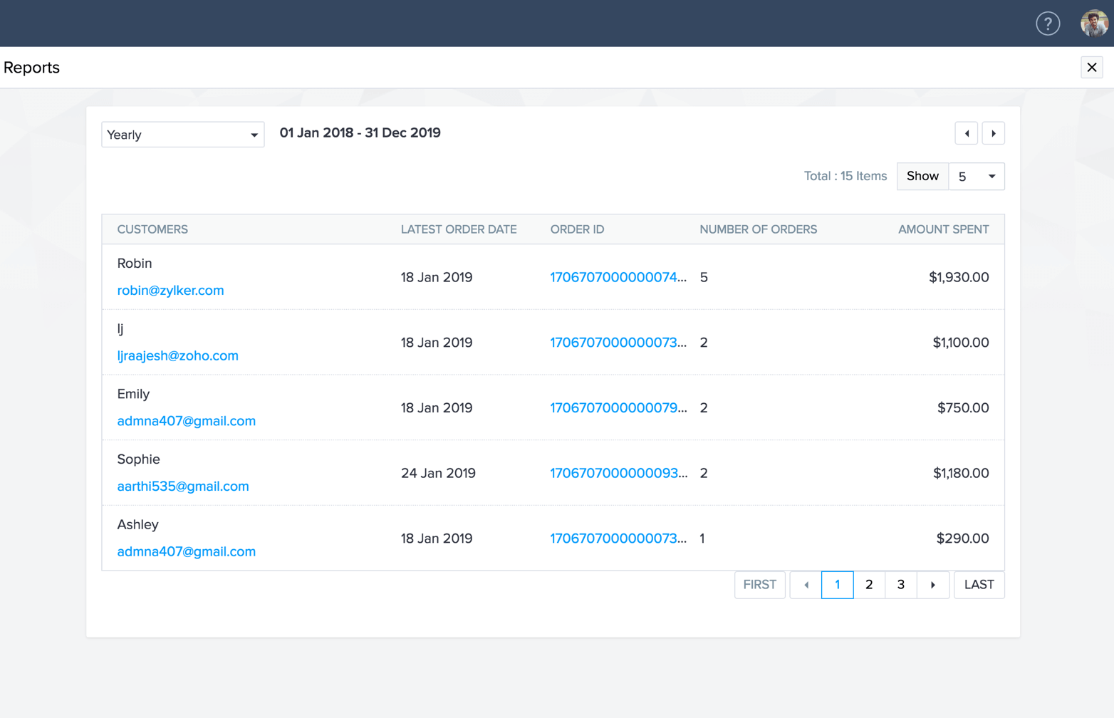 ストアの実績を判断するために必要な統計データをすべて表示できます。数回クリックするだけで、各商品のバリエーション、カテゴリー、コレクション、顧客を指定して詳細情報を深く掘り下げられます。