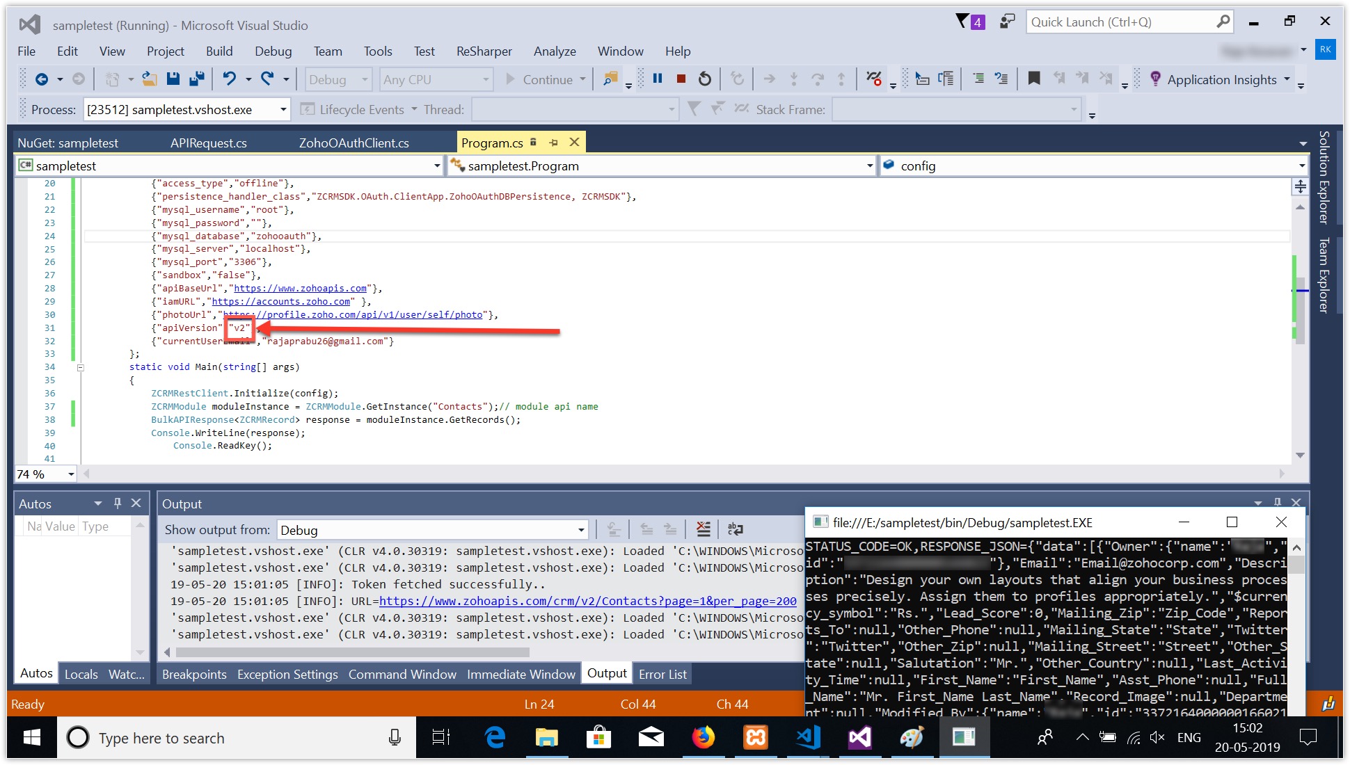 設定辞書の「apiBaseUrl」キーで、「https://www.zohoapis.com」の後ろにあるスラッシュ(/)を削除します。