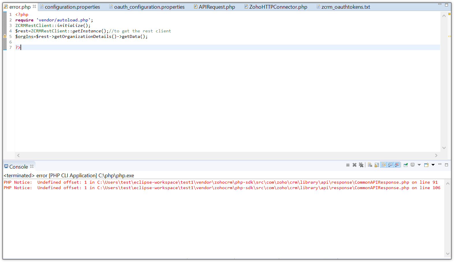 Add the below line before$result=curl_exec($curl_pointer)in thefirerequest()anddownloadFile()methods ofZohoHTTPConnector.phpfile, and thepost()andget()methods of theZohoOAuthHTTConnector.phpfile.