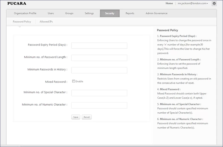 管理者が組織内のパスワードポリシーを制限/設定する方法をご紹介いたします。