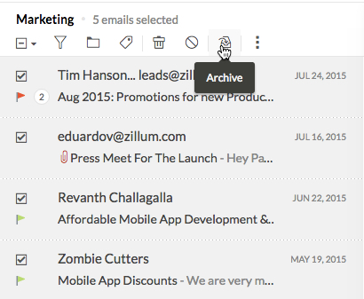 Zoho Mailのアーカイブ機能を使用すると、受信トレイの古いメールを整理して保持できます。メールをアーカイブすると、そのメールは同じフォルダーに残りますが、メールのリストからは削除されます。このためかんたんに参照と取得ができます。