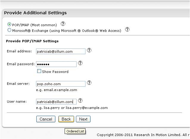 BlackBerryモバイル端末でZoho MailをPOPとして設定する手順