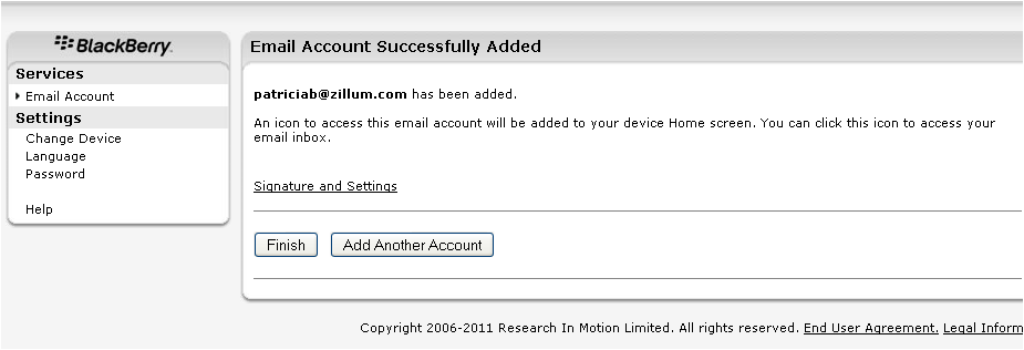 - BlackBerryでメールアカウントを設定するには、BlackBerryサービスアカウントが必要です。