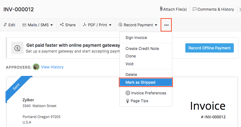 When you create a standalone invoice or bill (not associated with any order), only the accounting stock of the line items would be affected, leaving the physical stock unchanged. To reconcile the items’ physical stock with its accounting stock, you can mark the standalone invoices or bills as Shipped or Received. Doing so does not actually create a shipment or purchase receive, rather, it indicates that the physical stock of the items have changed as well.