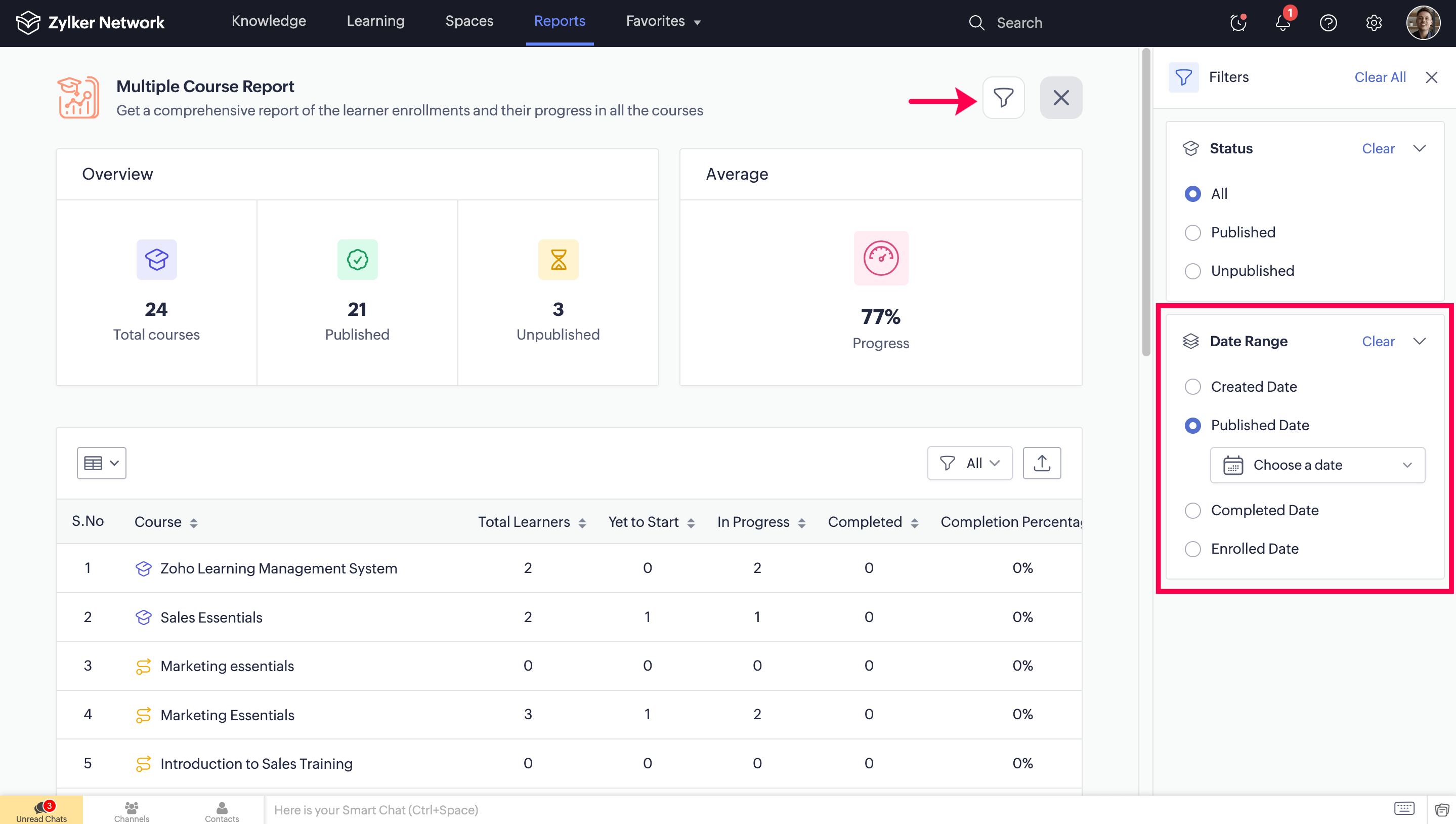 NewView a log of all the activities in Zoho Learn with audit log.