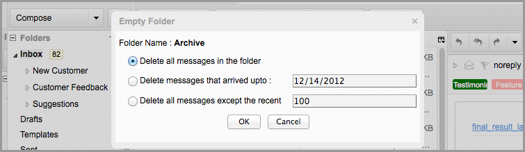 Apart from the Empty folder option, Zoho Mail also provides an Archive feature to archive emails for future reference. Detailed information about the Archive feature is available on this help page.