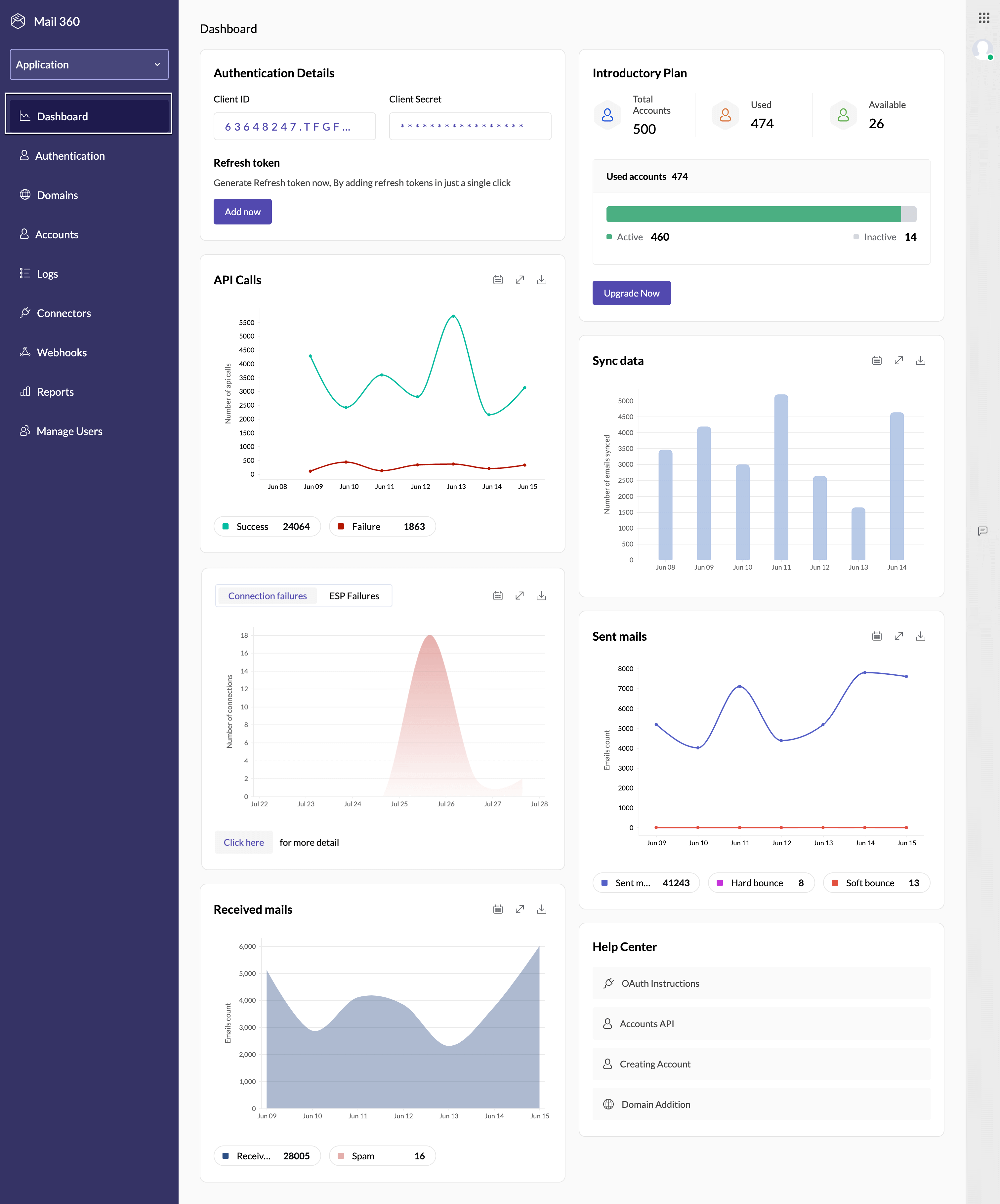 In the case of Sync accounts, the connection failures that occur between the Mail360 platform and the connected email account providers are logged. This report, generated specifically for Sync accounts, includes information such as the number of connection failures, the frequency of failures over a specific period, and the affected accounts or providers.