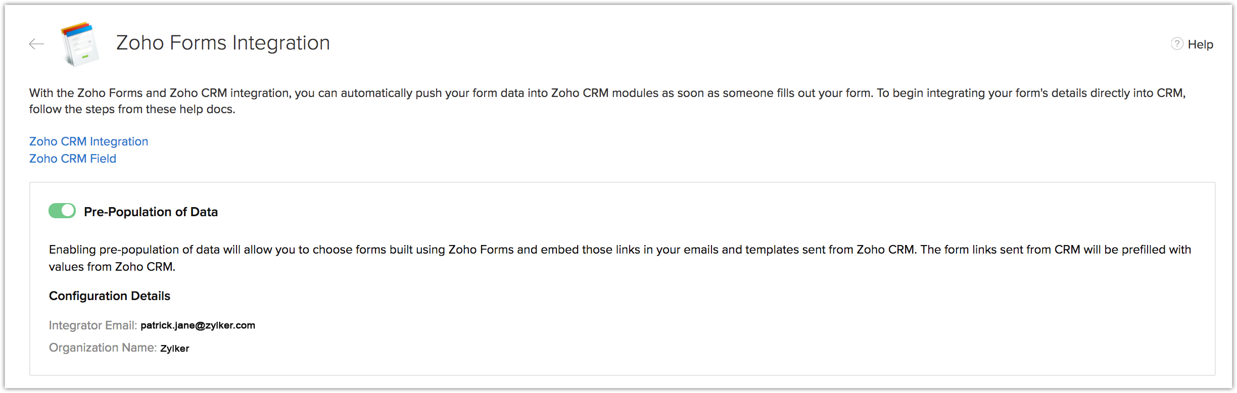 Door deze integratie in te schakelen, kunt u het formulier met uw klanten delen, waarbij bepaalde gegevens vooraf in uw formulier worden ingevuld vanuit Zoho CRM.