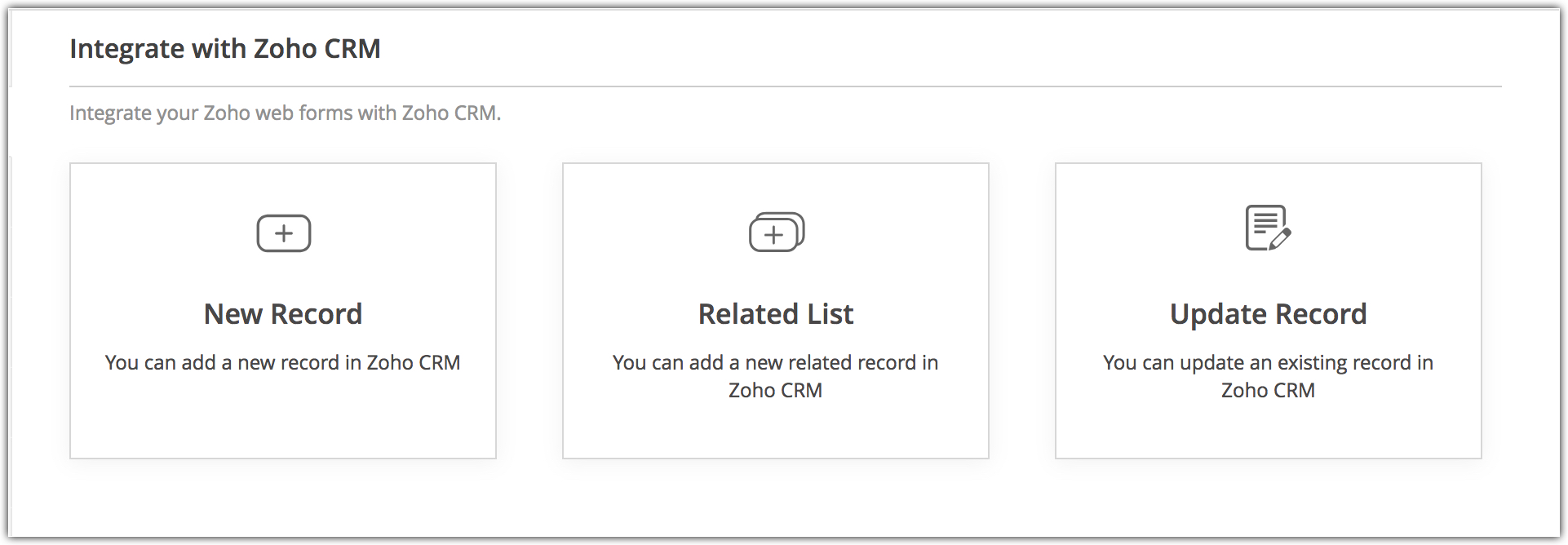 Het integreren van Zoho Forms met CRM omvat de volgende stappen:
