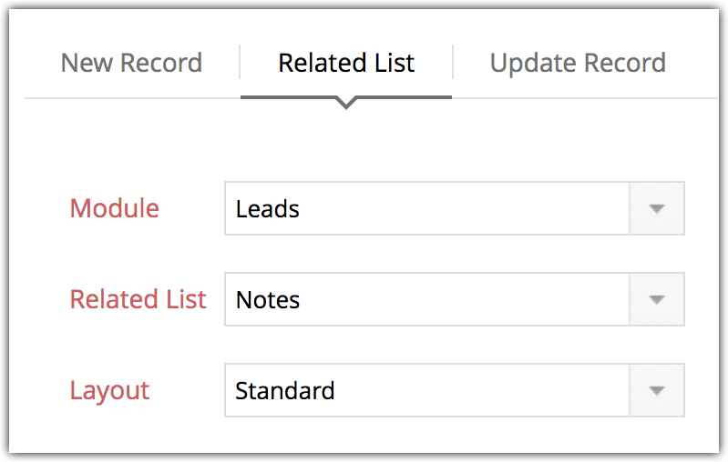 - Selecteer de module, gerelateerde lijst en lay-out in de vervolgkeuzelijst.