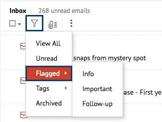 De e-mails die met een specifieke Flag zijn gemarkeerd weergeven - Klik op het pictogram View >> Selecteer Flagged >> Selecteer de specifieke Flag (Info/Important/Followup)