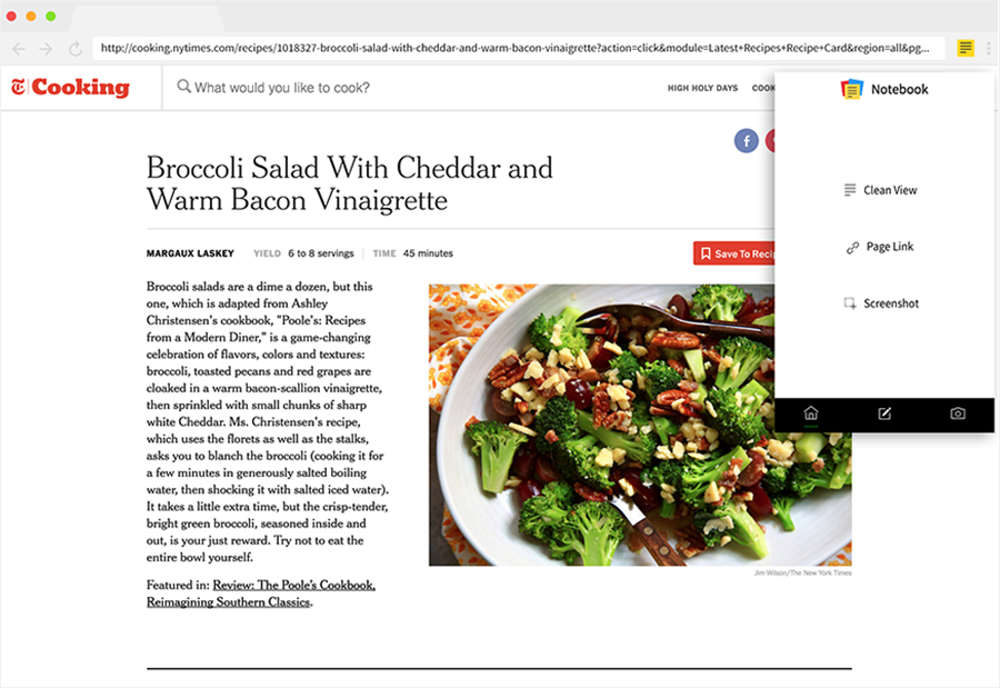 Need to take a snapshot of a web page? Grab a screenshot and save directly to Notebook.