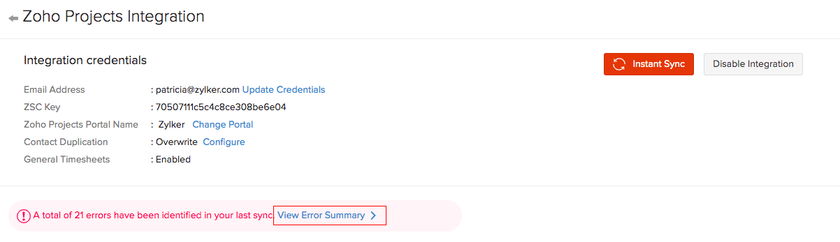 Note: You can re-enable the integration only with the Zoho Projects portal that was previously connected.