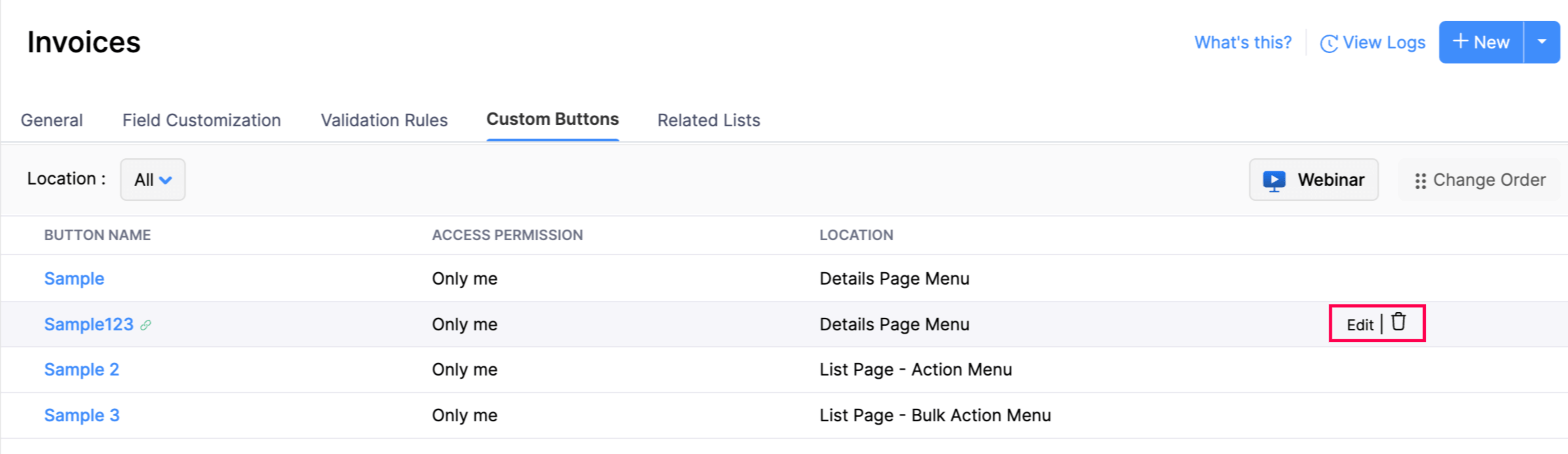 - Click + New or Edit to make changes to an existing invoice.