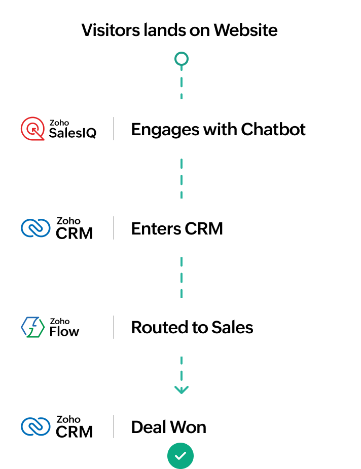 - Zoho CRM stores visitor information and chat logs on their lead record.