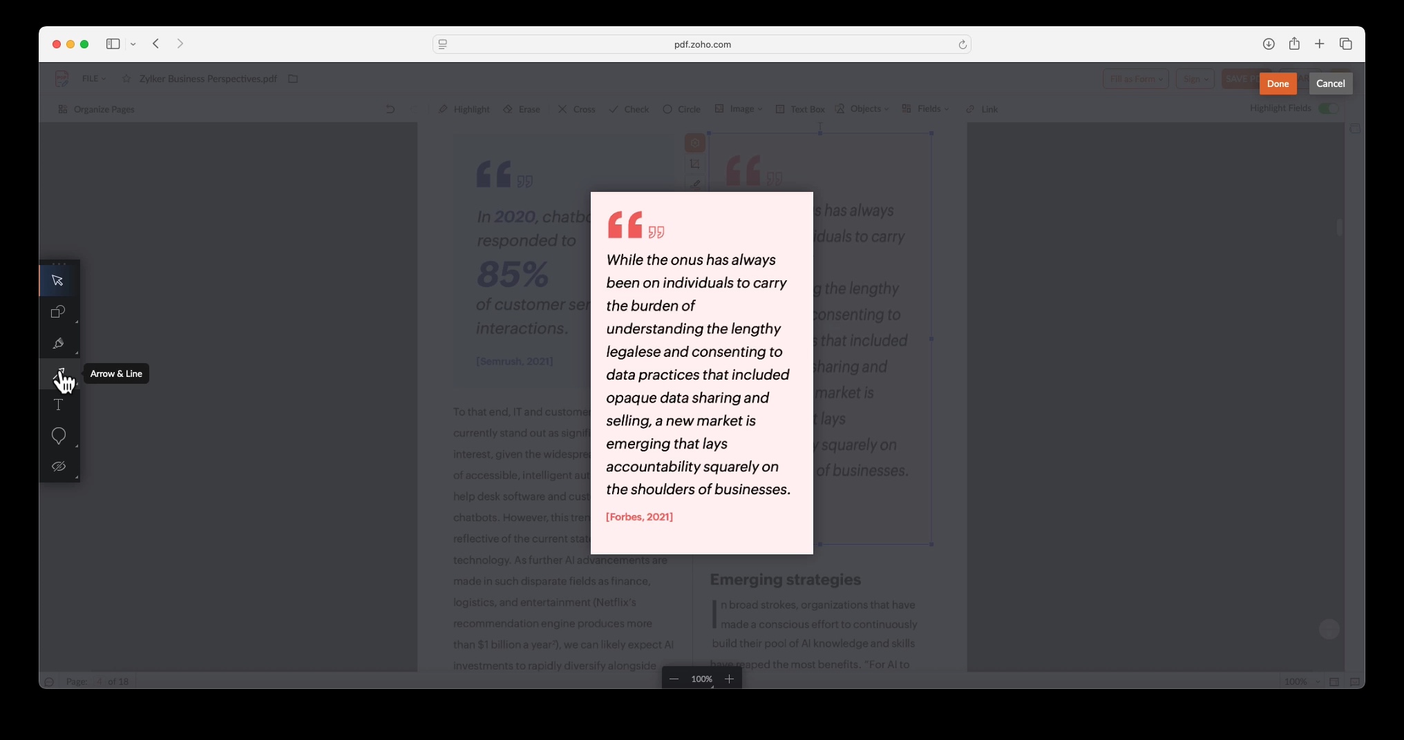 Annotate images in PDFs using Zoho PDF Editor, a free online PDF editing tool.