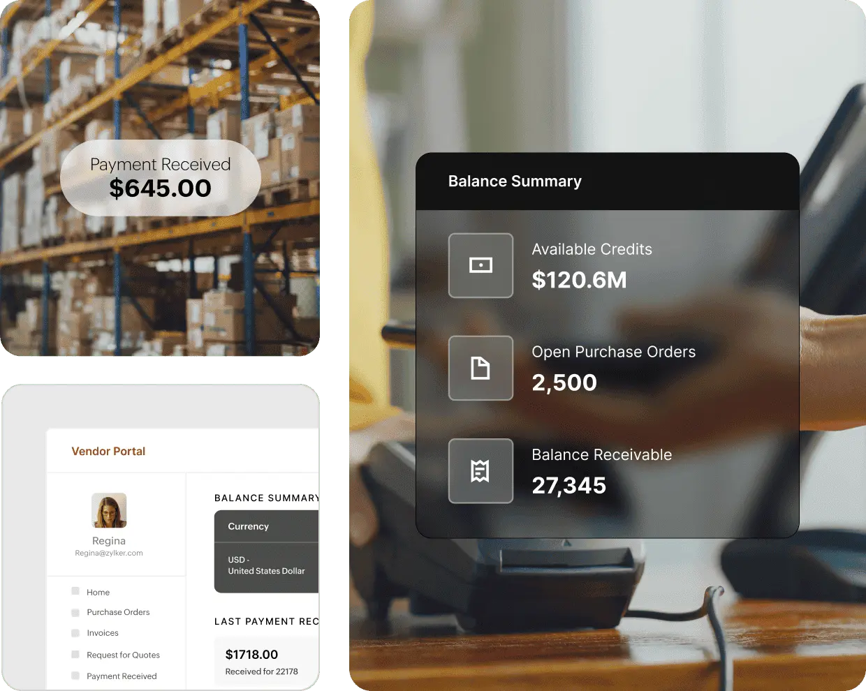Zoho Procurement's comprehensive supplier management module with dedicated vendor portal software let's businesses centralize and manage all supplier data including business information, transactions, contracts, feedback, performance metrics, and more.