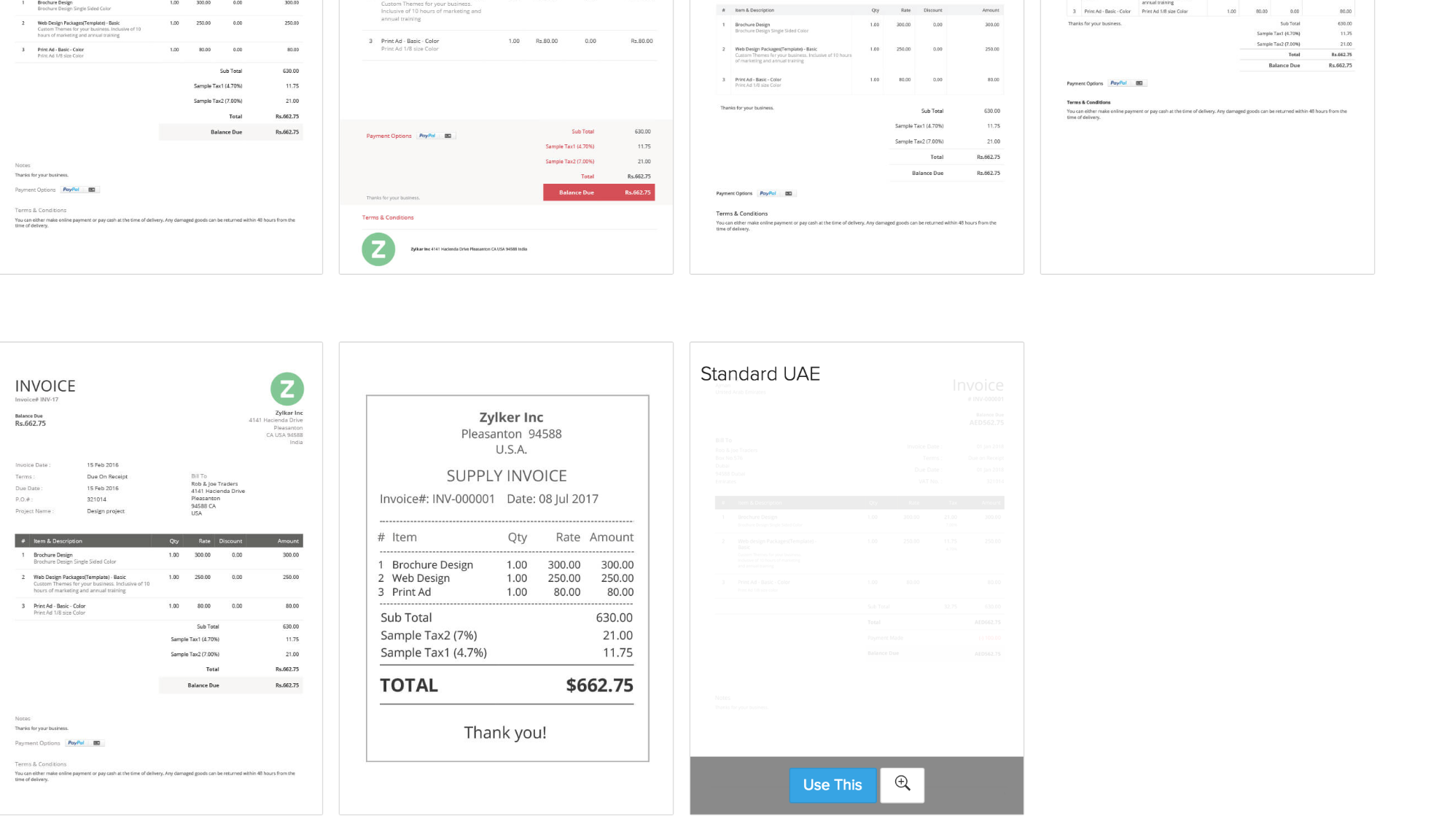 We have introduced an all new invoice template which displays all the required fields specified by the government. You can also choose to view this template in your preferred language, Arabic. Just scroll down the page and find the template by the name Standard UAE.