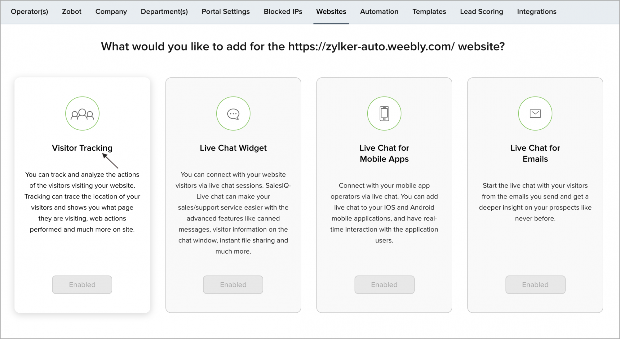 Note: If Visitor Tracking is not working on your website, then navigate to Setting > Website > Website name, and check if the visitor tracking option is disabled.