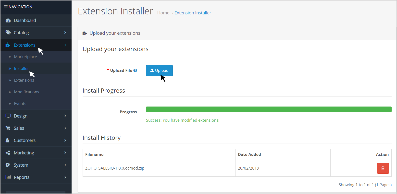 To install and add the Zoho SalesIQ Chat Widget to your OpenCart, do the following: