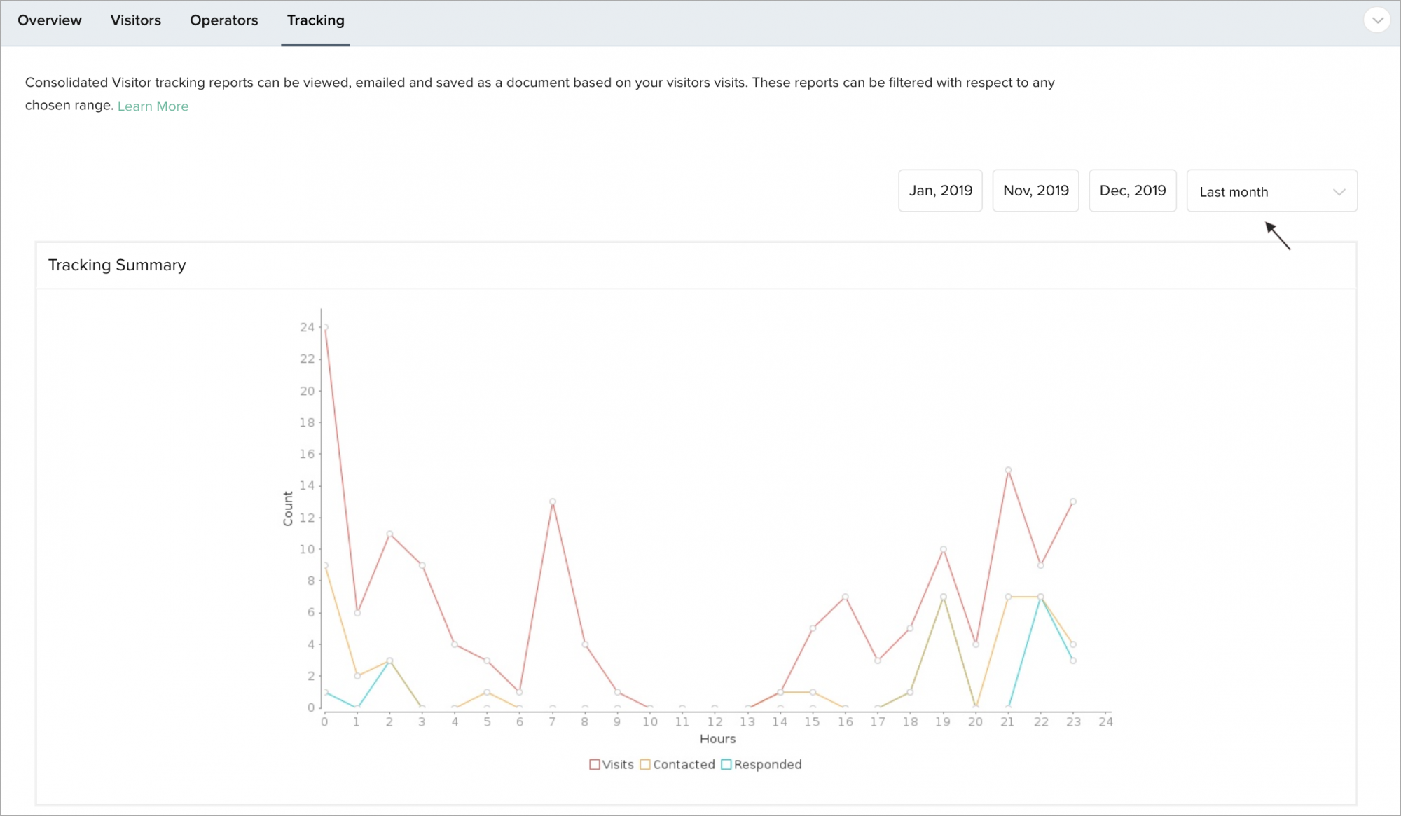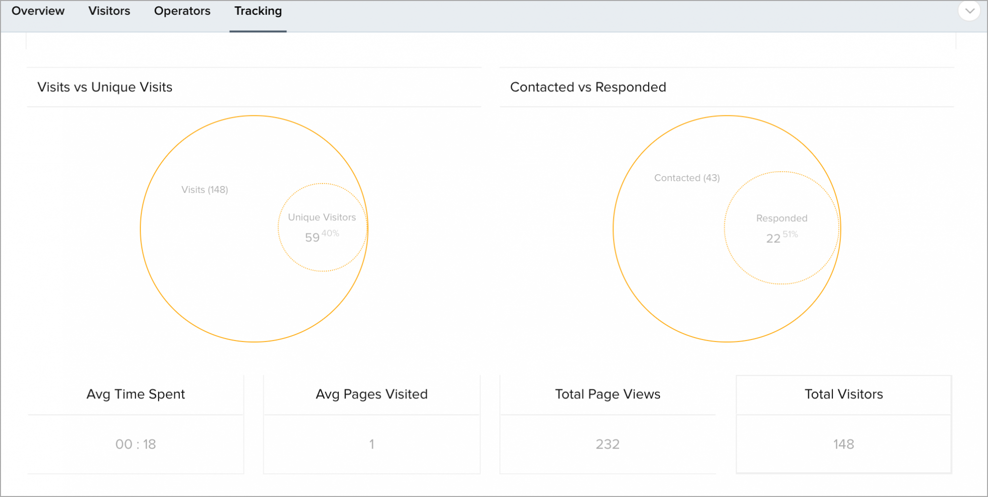 The Tracking reports section in the Reports module, is a robust dashboard that gives you a feel about everything in the entire live chat tracking operations.