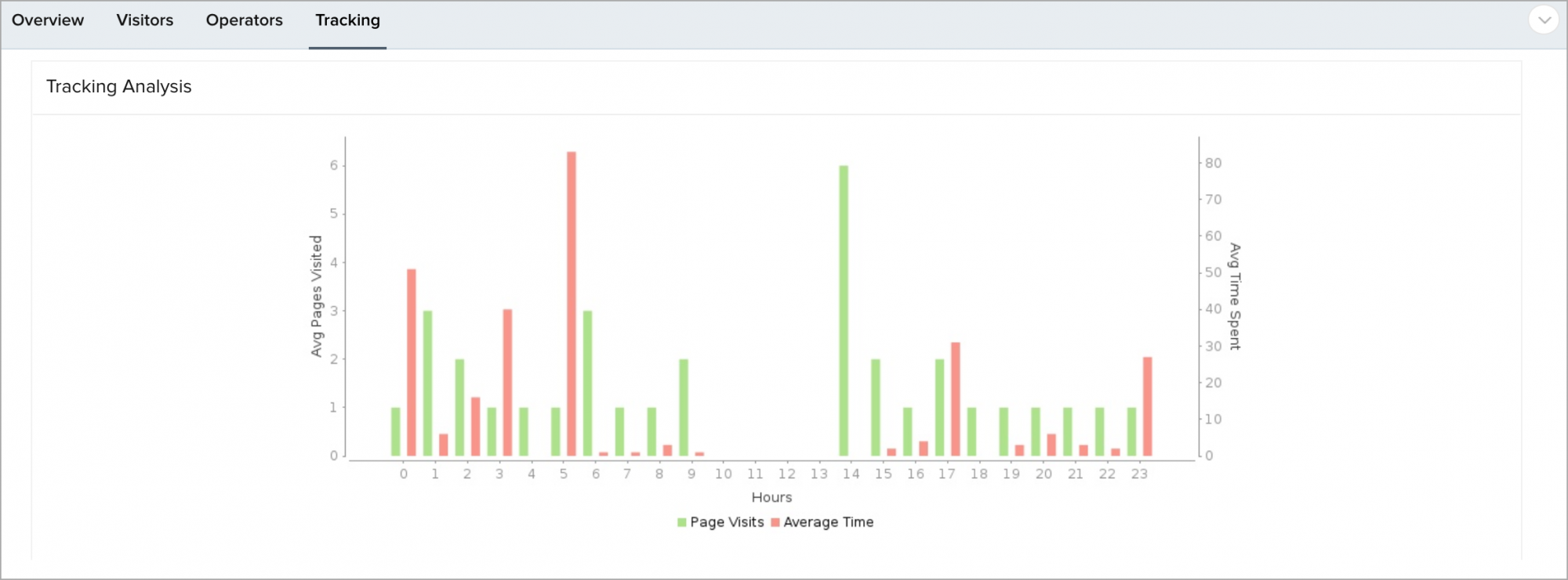 The tracking analysis report lets you view the average number of pages visited by a visitor and the average time spent by the visitor in a page.
